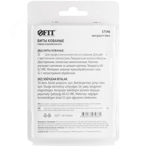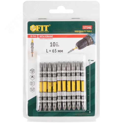 Биты кованые, сталь S2, двусторонние 65 мм PH2/РН2, Профи 10 шт., блистер