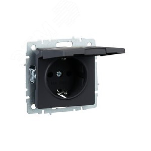 BRITE Розетка с заземлением с защитными шторками и крышкой 16А IP20 РСбш10-3-БрГ графит