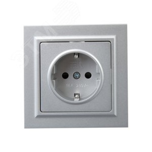 BRITE Розетка 1 пост с заземлением с защитными шторками 16А в сборе РСР14-1-0-БрА алюминий IEK