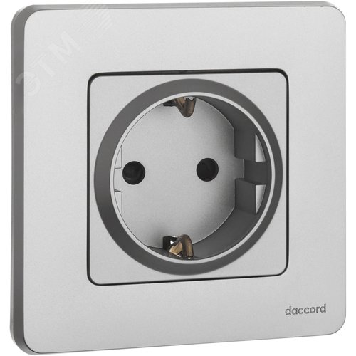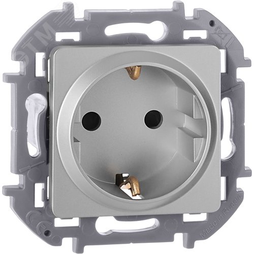Розетка 1-местная с заземлением с защитными шторками 16А алюминий INSPIRIA