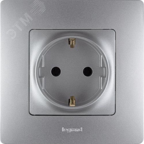 Розетка 1-местная с заземлением без защитных шторок 16А алюминий ETIKA