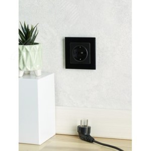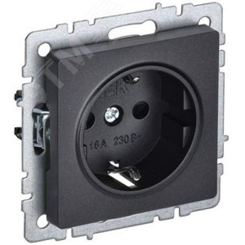 BRITE Розетка с заземлением с защитными шторками 16А РС14-1-0-БрЧ черный