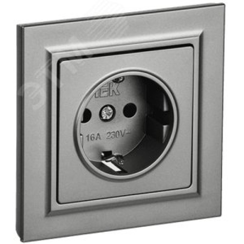 BRITE Розетка 1 пост с заземлением с защитными шторками 16А в сборе РСР14-1-0-БрС сталь IEK