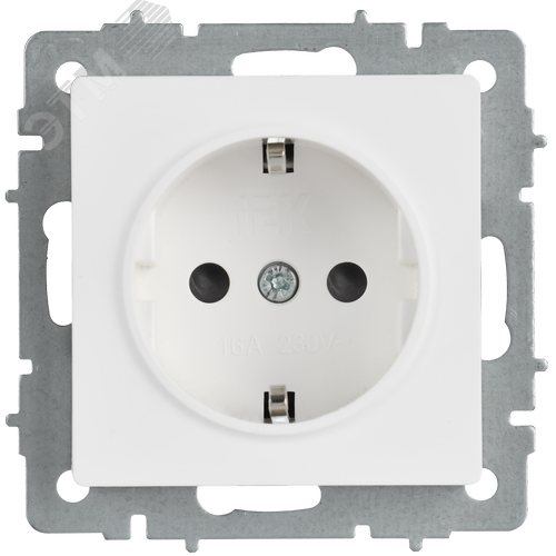 BRITE Розетка 1-местная с заземлением с защитными шторками 16А безвинтовое крепление РС24-1-0-БрАБ арктический белый IEK