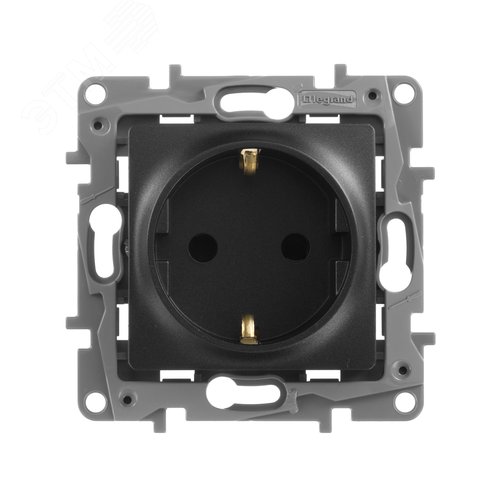 Розетка 1-местная с заземлением с защитными шторками 16А антрацит ETIKA