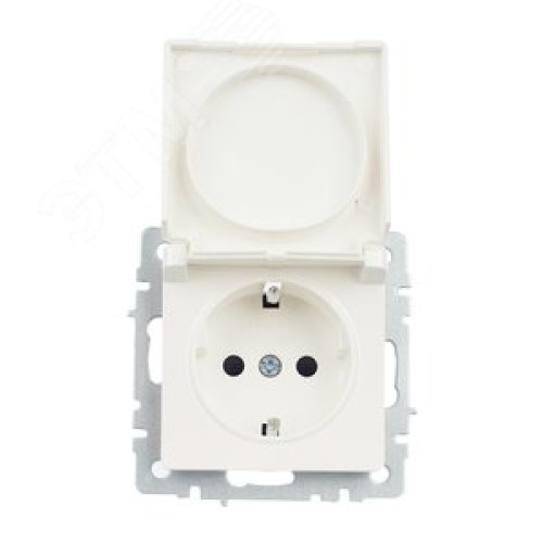 BRITE Розетка с заземлением с защитными шторками и крышкой 16А IP20 РСбш10-3-БрЖ жемчуг