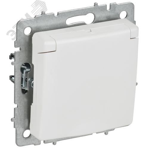 BRITE Розетка 1-местная с заземлением с защитными шторками и крышкой 16А IP20 РСбш10-3-БрАБ арктический белый IEK