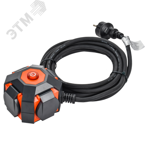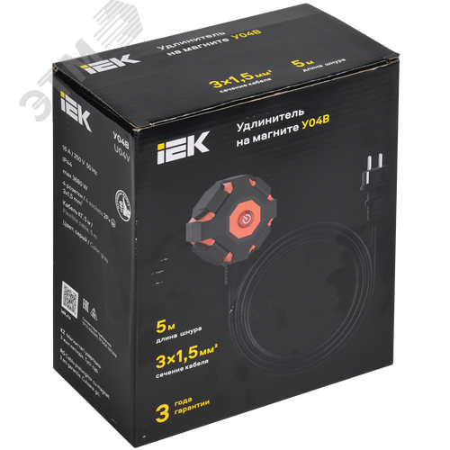 Удлинитель на магните У04В 4 места с защитными крышками IP44 с заземлением 2P+PE 5 метров КГ 3х1,5мм2 16А/250В IEK