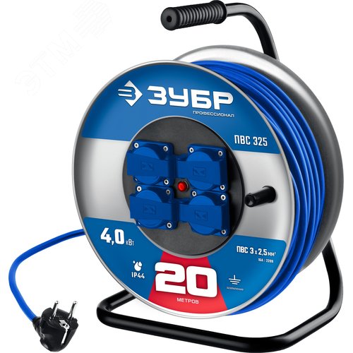 Удлинитель силовой на катушке ПВС-325, ПВС, 3 x 2.5 мм2, 20 м, 4000 Вт, IP44, Профессионал