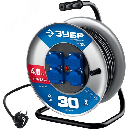 Удлинитель силовой на стальной катушке КГ-325, КГ, 3 x 2.5 мм2, 30 м, 4000 Вт, IP44, Профессионал
