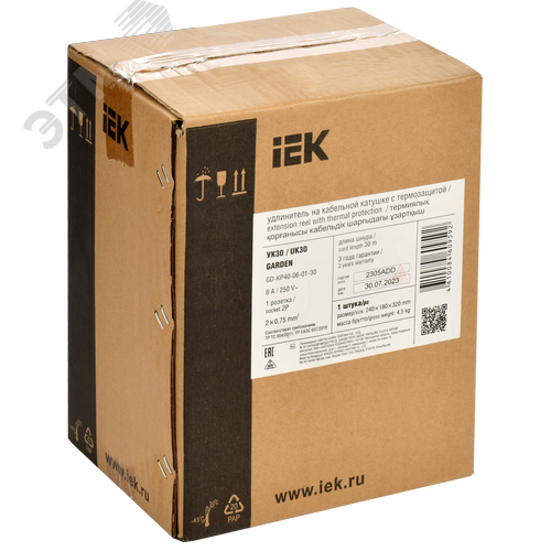 Катушка GARDEN УК30 1 место 2 P 2х0,75 мм 2.30 м