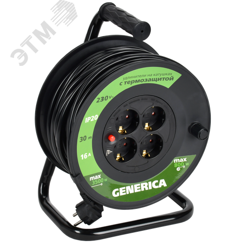 Удлинитель силовой УК30 с термозащитой 4 места 2P+PE/30м 3х1.5мм2 GENERICA