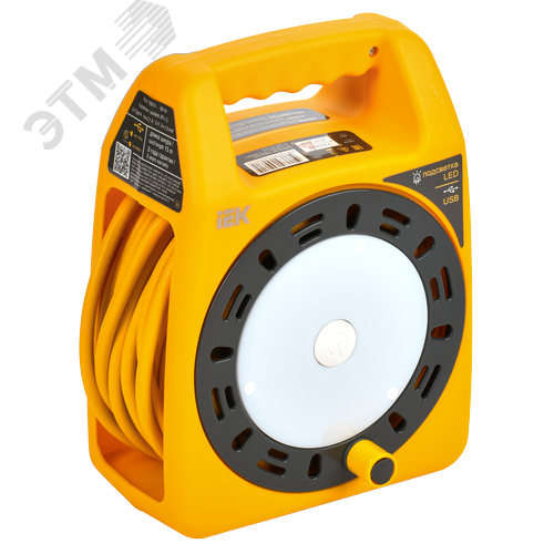 Катушка с заземлением и термозащитой УК15 3 места 2P+PE 3х1,5 мм 2 USB х 2 LED 15 м INDUSTRIAL