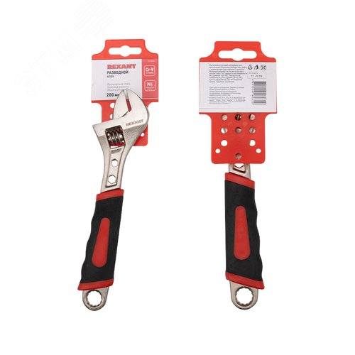 Ключ разводной 200 мм никелированный, двухкомпонентная рукоятка
