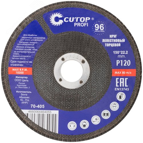 Круг лепестковый торцевой Cutop Profi (96 лепестков) 150x22.2 мм, Р120