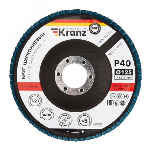 Круг лепестковый торцевой, циркониевый, P40, 125х22,2мм INOX