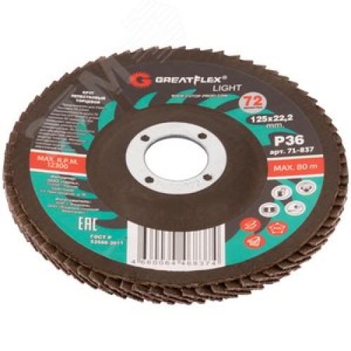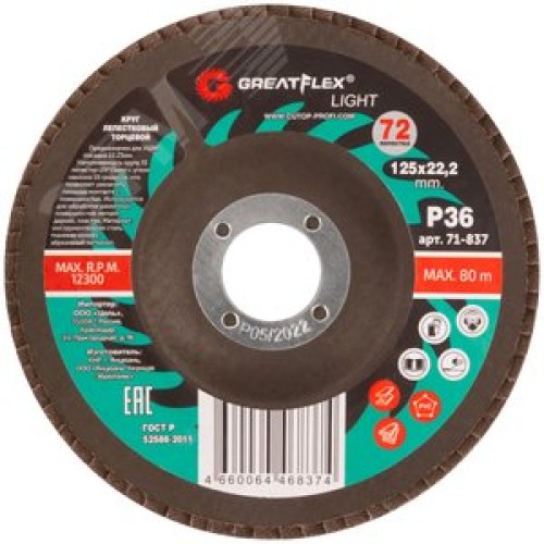 Круг лепестковый торцевой GreatFlex Light (72 лепестка): 125x22,2 мм, P36
