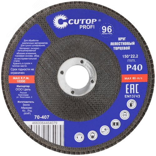 Круг лепестковый торцевой Cutop Profi (96 лепестков) 150x22.2 мм, Р40