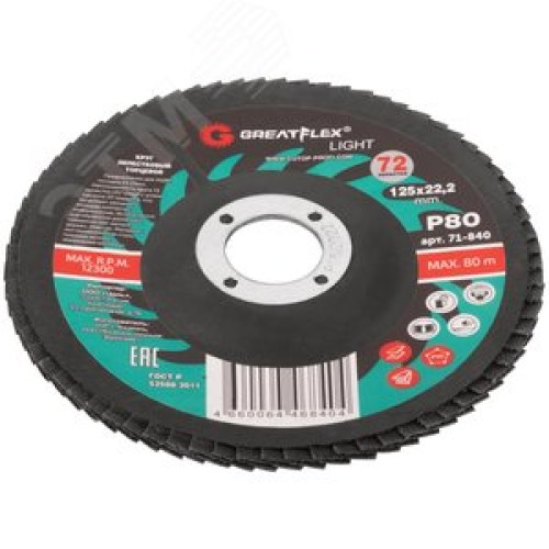 Круг лепестковый торцевой GreatFlex Light (72 лепестка): 125x22,2 мм, P80