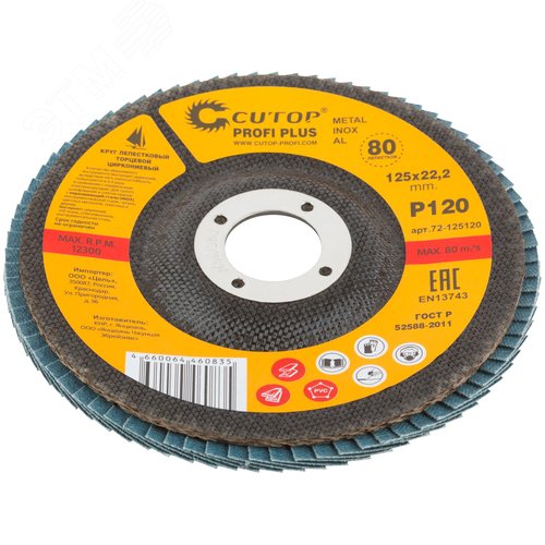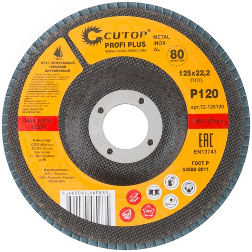 Круг лепестковый торцевой циркониевый Cutop Profi Plus (80 лепестков) 125x22.2 мм, Р120