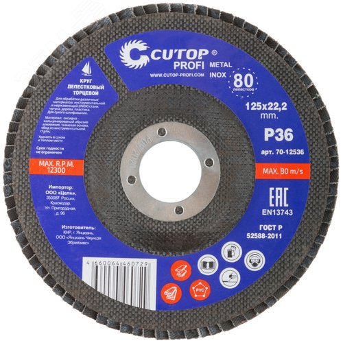 Круг лепестковый торцевой Cutop Profi (80 лепестков) 125x22.2 мм, Р36