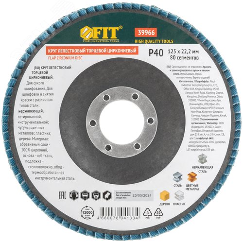 Круг лепестковый торцевой циркониевый, 125 мм Р 40