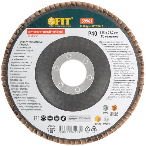 Круг лепестковый торцевой керамический, 125 мм Р 40
