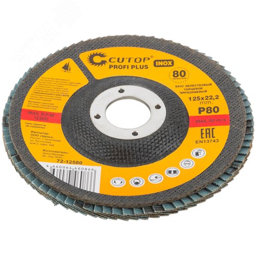 Круг лепестковый торцевой циркониевый Cutop Profi Plus (80 лепестков) 125x22.2 мм, Р80