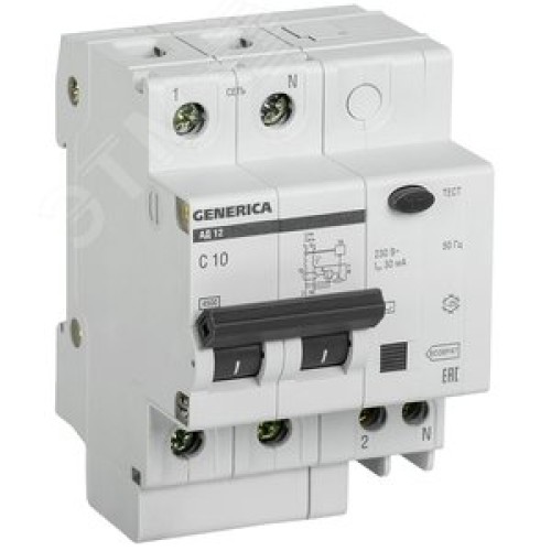 Выключатель автоматический дифференциальный АД12 2Р 10А 30мА GENERIC