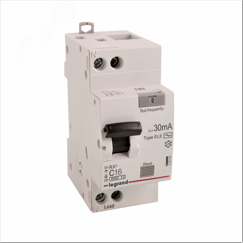 Выключатель автоматический дифференциального тока АВДТ RX3 6000 6 кА, тип характеристики С 1П+Н 230 В~, 16А, тип АС, 30 ма, 2 модуля