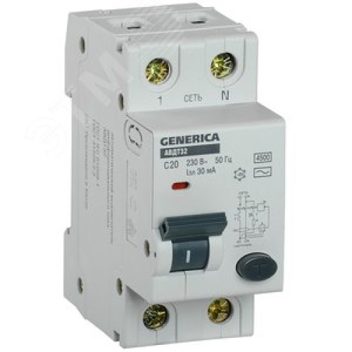 Автоматический выключатель дифференциального тока АВДТ 32 C20 - Выключатель автоматический Дифференциального тока GENERICA