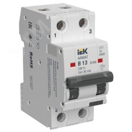 Выключатель автоматический дифференциального тока B10N 2P B13 30мА тип AC