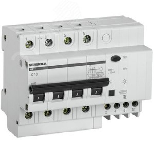 Выключатель автоматический дифференциальный АД14 4Р 10А 30мА GENERIC