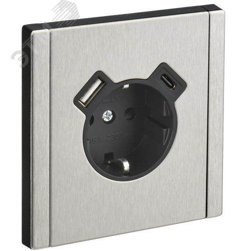 FORTE&PIANO Розетка 1-местная с заземлением с защитными шторками винтовое крепление 16А USB A+C 18Вт FP747M металл никель IEK