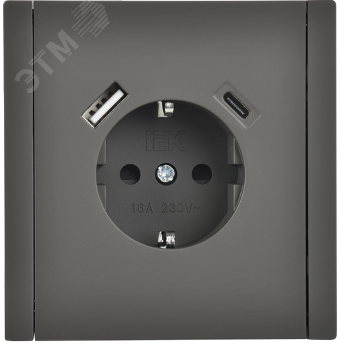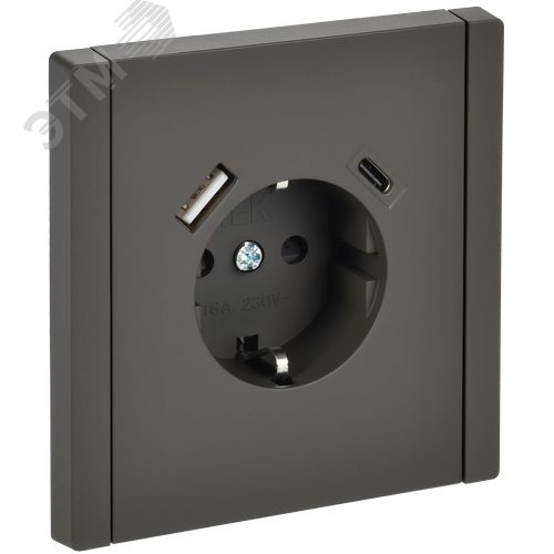 FORTE&PIANO Розетка 1-местная с заземлением с защитными шторками винтовое крепление 16А USB A+C 18Вт FP347 серый IEK