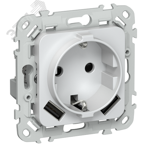 FLITE Розетка 1-местная с заземлением с защитными шторками 16А с USB A+A 3,1А РСЮша11-0-ФлЖ жемчуг IEK