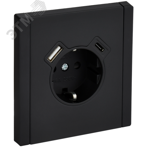 FORTE&PIANO Розетка 1-местная с заземлением с защитными шторками винтовое крепление 16А USB A+C 18Вт FP147M металл черный IEK