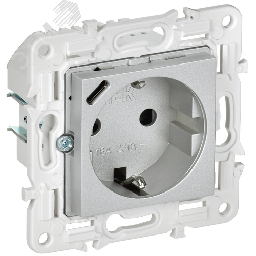 SKANDY Розетка с заземлением с защитными шторками 16А с USB C 18Вт SK-R17S серебряный IEK