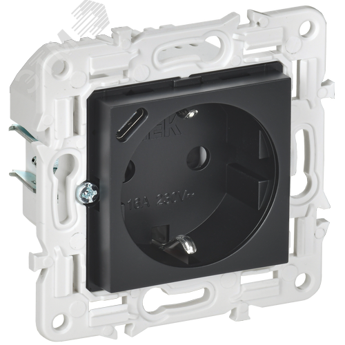 SKANDY Розетка с заземлением с защитными шторками 16А с USB C 18Вт SK-R17Bl черный IEK