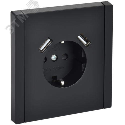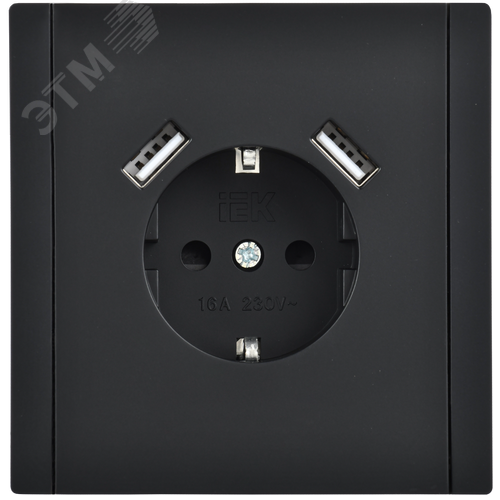 FORTE&PIANO Розетка 1-местная с заземлением с защитными шторками винтовое крепление 16А USB A+A 3,1А FP145 черный IEK
