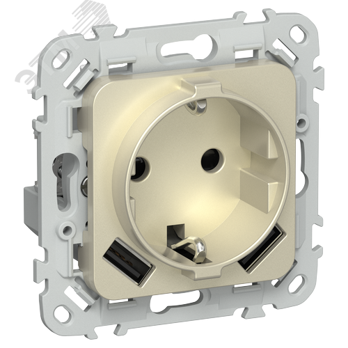 FLITE Розетка 1-местная с заземлением с защитными шторками 16А с USB A+A 3,1А РСЮша11-0-ФлШ шампань IEK