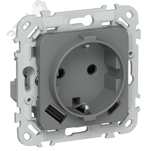FLITE Розетка 1-местная с заземлением с защитными шторками 16А с USB A+C 20Вт безвинтовое крепление РСЮшс11-1-ФлМА мокрый асфальт IEK