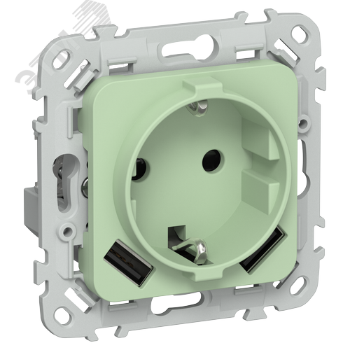 FLITE Розетка 1-местная с заземлением с защитными шторками 16А с USB A+A 3,1А безвинтовое крепление РСЮша11-1-ФлФ фисташковый IEK