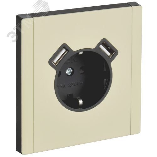FORTE&PIANO Розетка 1-местная с заземлением с защитными шторками винтовое крепление 16А USB A+A 3,1А FP845M металл слоновая кость IEK