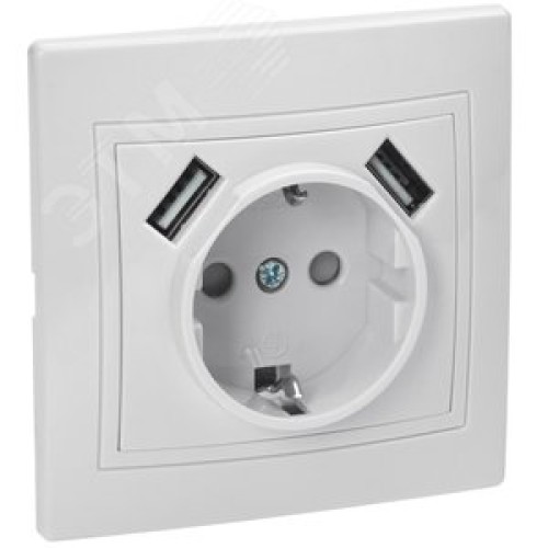 KVARTA Розетка с заземлением с защитными шторками 16А USBх2 2,1А РЮш10-1-КБ белый GENERICA