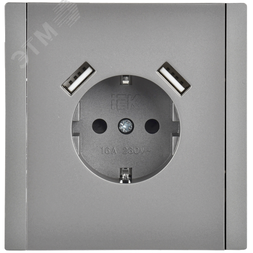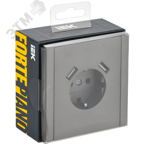 FORTE&PIANO Розетка 1-местная с заземлением с защитными шторками винтовое крепление 16А USB A+A 3,1А FP545 сталь IEK