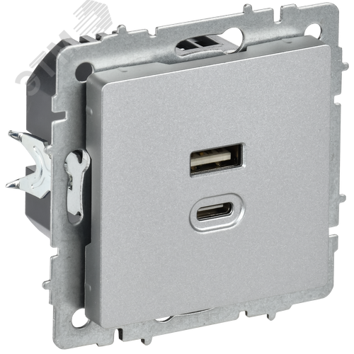 BRITE Розетка USB A+C 45Вт высокоскоростная зарядка РЮ11-2-БрА алюминий IEK