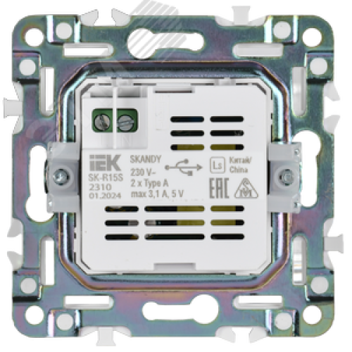 SKANDY Розетка USB A+A 3,1А SK-R15S серебряный IEK