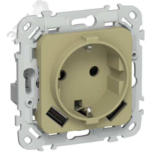FLITE Розетка 1-местная с заземлением с защитными шторками 16А с USB A+A 3,1А РСЮша11-0-ФлО оливковый IEK