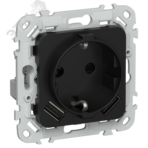 FLITE Розетка 1-местная с заземлением с защитными шторками 16А с USB A+A 3,1А безвинтовое крепление РСЮша11-1-ФлЧ черный IEK
